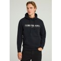 Στο μπροστινο μερος πανω αριστερα εχει σταμπα με την επωνυμια της εταιρειας καθως σταμπα εχει και το πισω μερος του φουτερ.