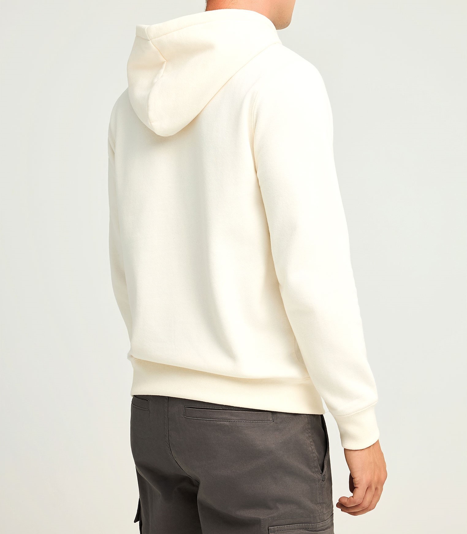 Στο μπροστινο μερος πανω αριστερα εχει σταμπα με την επωνυμια της εταιρειας καθως σταμπα εχει και το πισω μερος του φουτερ.