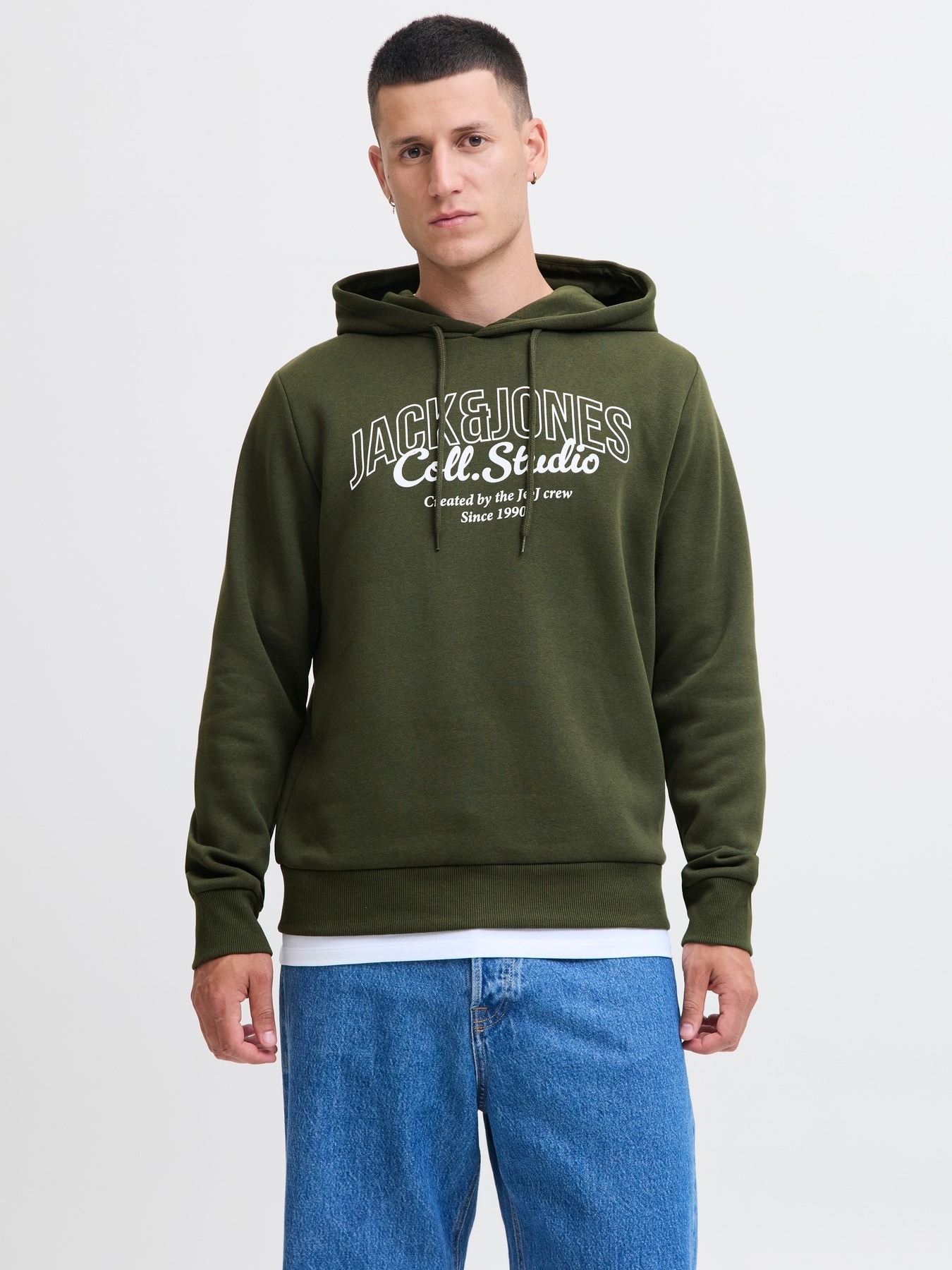 Φουτερ με φλις στο εσωτερικο του της επωνυμης εταιρειας JACK&JONES με σταμπα μπροστα και κουκούλα.