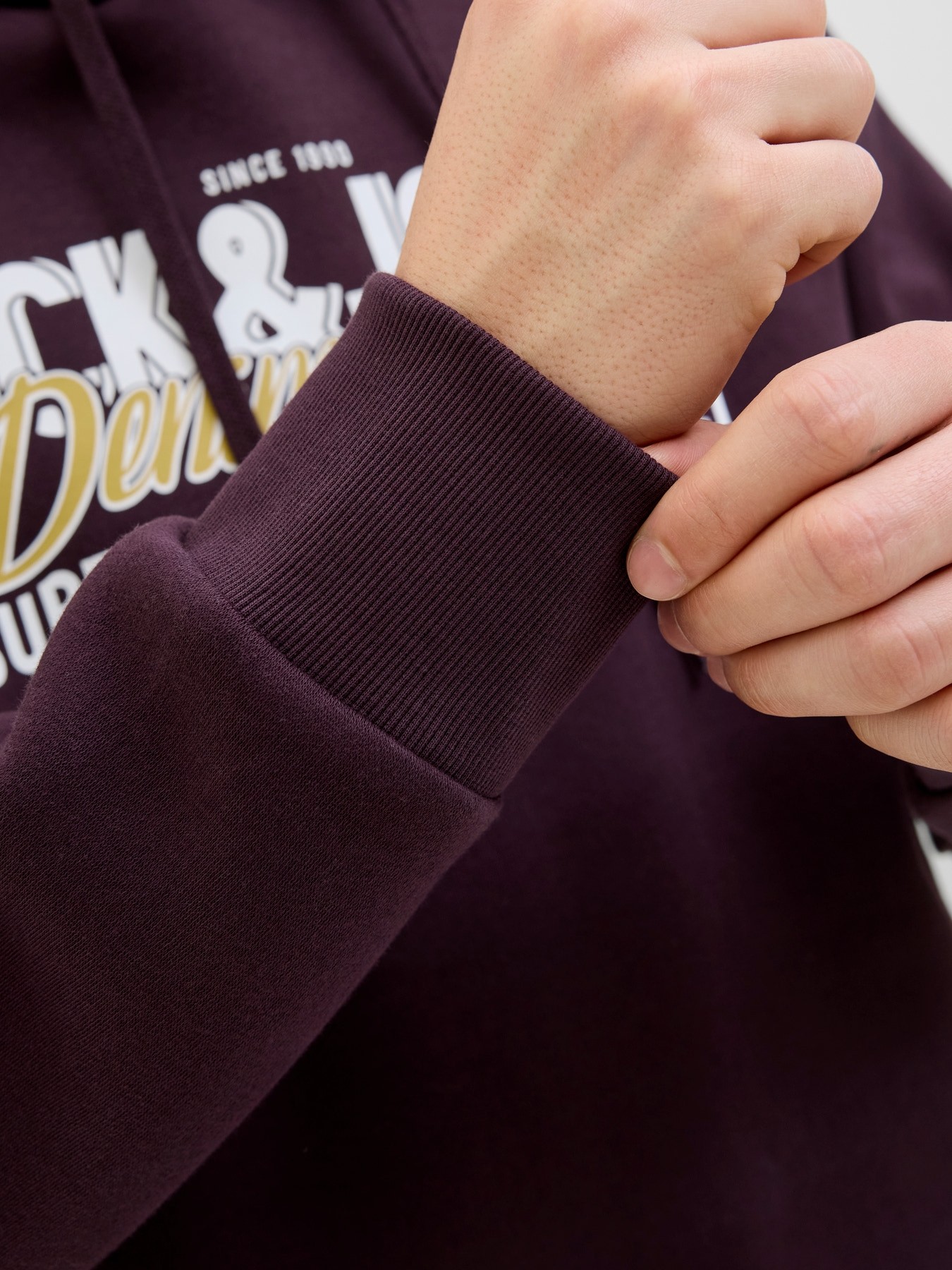 Φουτερ με φλις στο εσωτερικο του της επωνυμης εταιρειας JACK&JONES με σταμπα μπροστα και κουκούλα.