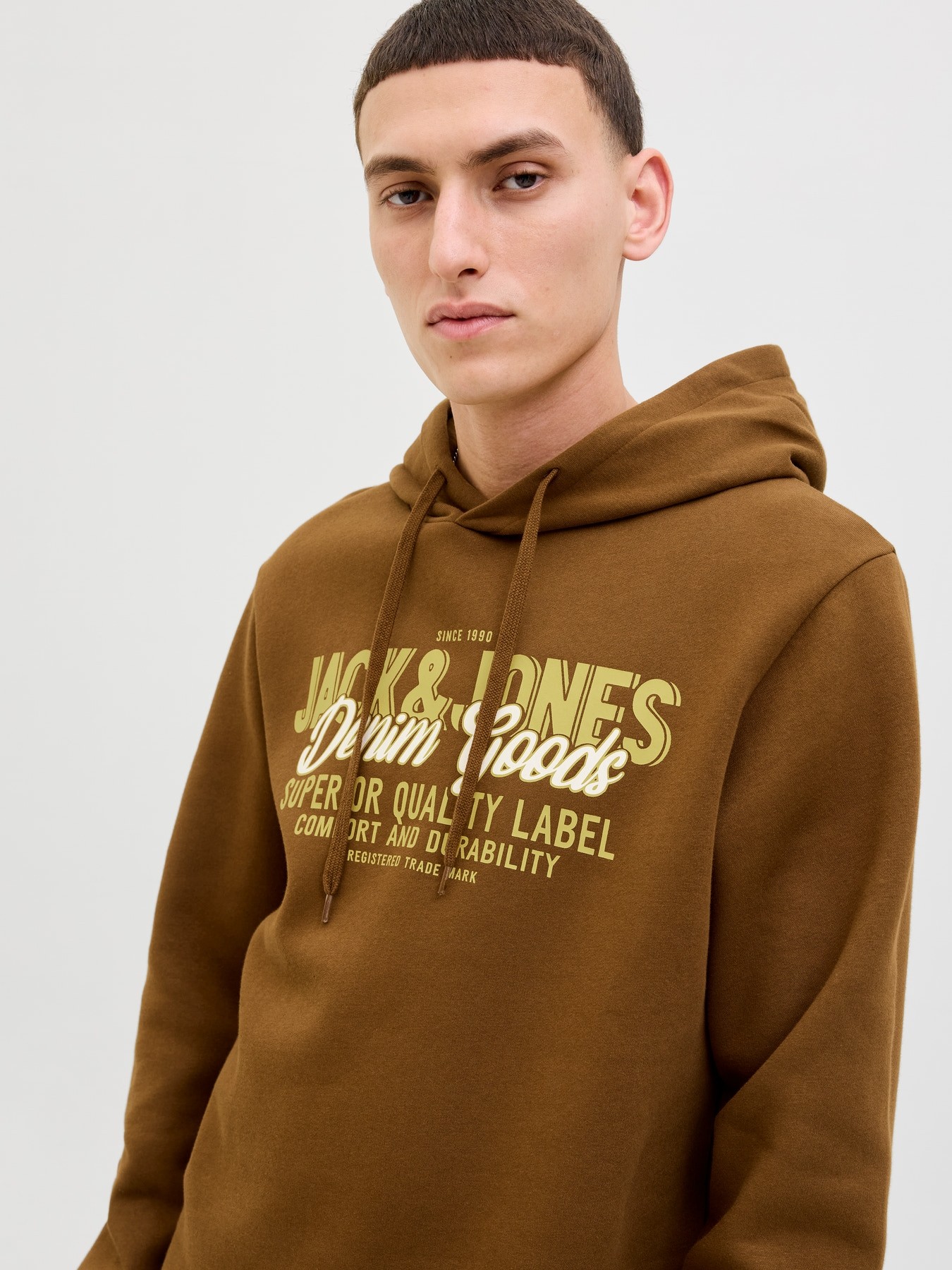 Φουτερ με φλις στο εσωτερικο του της επωνυμης εταιρειας JACK&JONES με σταμπα μπροστα και κουκούλα. Η υφη του ειναι πολυ απαλη. Συνδυάστε το με φόρμες και τζιν για καθημερινη και αθλητικη εμφανιση.