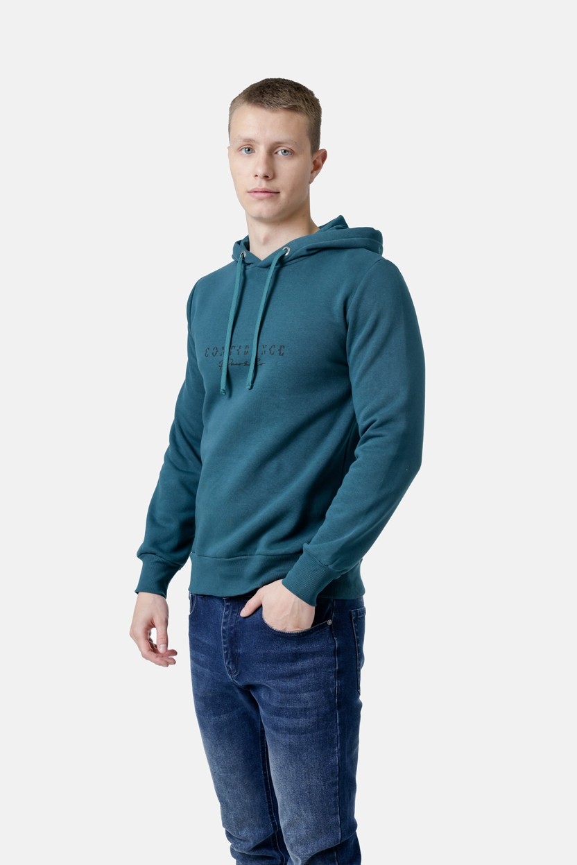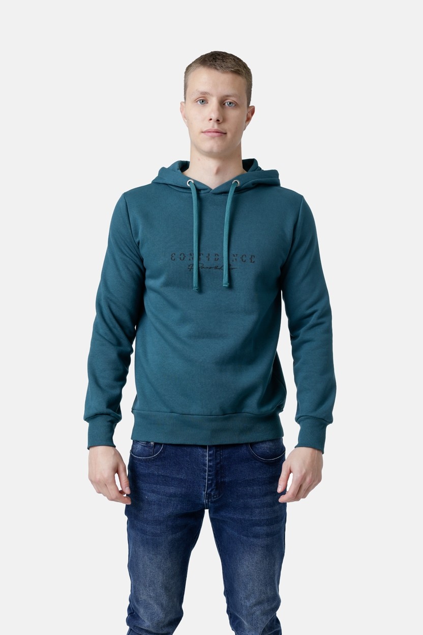 Ανδρικο φουτερ με κουκουλα και σταμπα στο μπροστινο μερος. Συνδυάζεται με φορμες και με jean για casual εμφανίσεις.