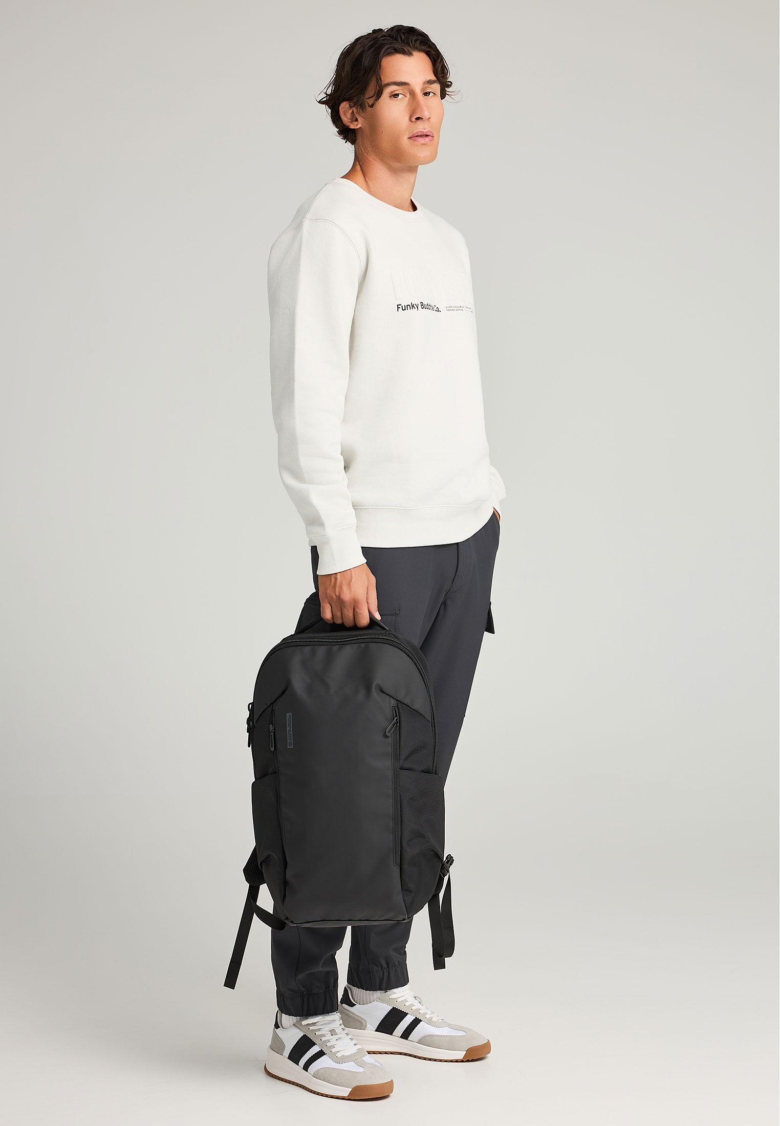 Sustainable μονόχρωμο φούτερ με κλειστή λαιμόκοψη, κατασκευασμένο από μείγμα βαμβακιού και ανακυκλωμένου πολυεστέρα για άνεση και περιβαλλοντική συνείδηση. Η κανονική εφαρμογή και το ίσιο στρίφωμα προσφέρουν ελευθερία κινήσεων και χαλαρή, καθημερινή εμφάνιση. Διαθέτει μακριά μανίκια με ριμπ μανσέτες και είναι ιδανικό για όλες τις εποχές. Η διακριτική γραφική εκτύπωση προσθέτει μια μοντέρνα urban πινελιά, ενώ μπορεί να συνδυαστεί με τζιν ή παντελόνι φόρμας για ένα αβίαστα στυλάτο look.
