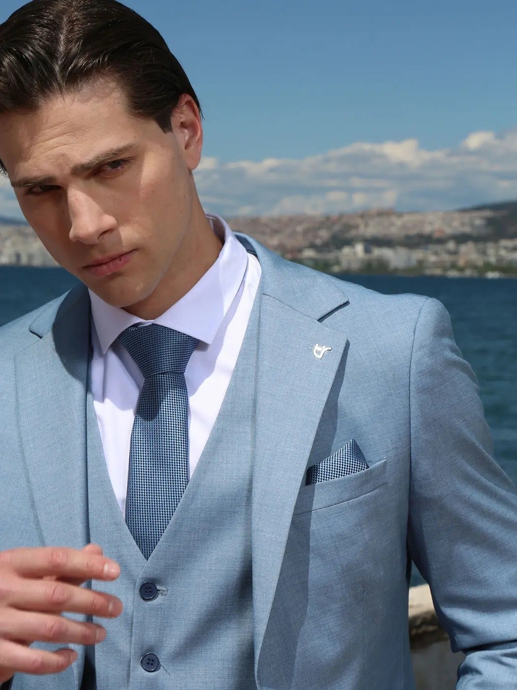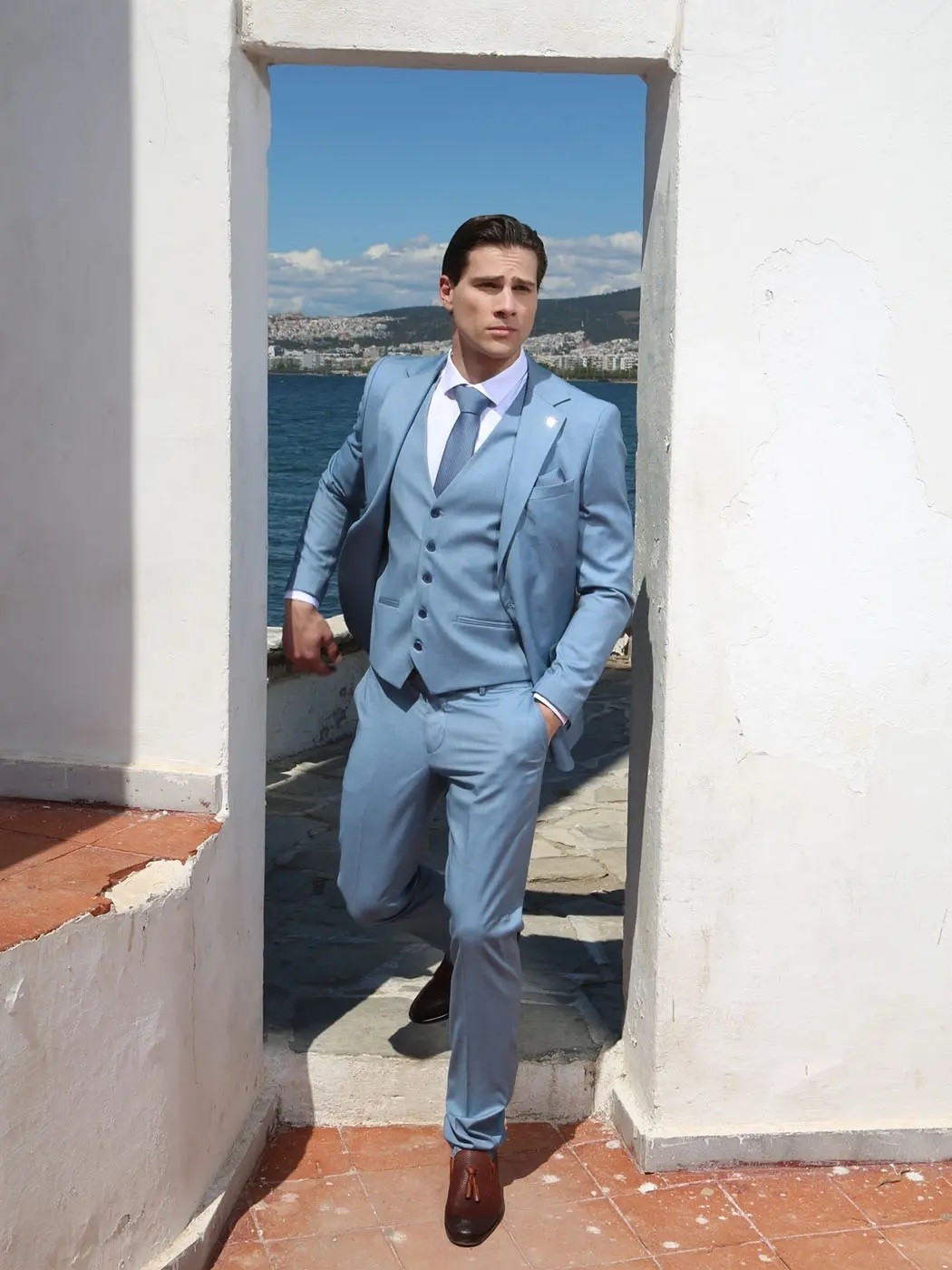 Αποτελειται απο 3 τεμαχια, σακακι, παντελονι και γιλεκο.