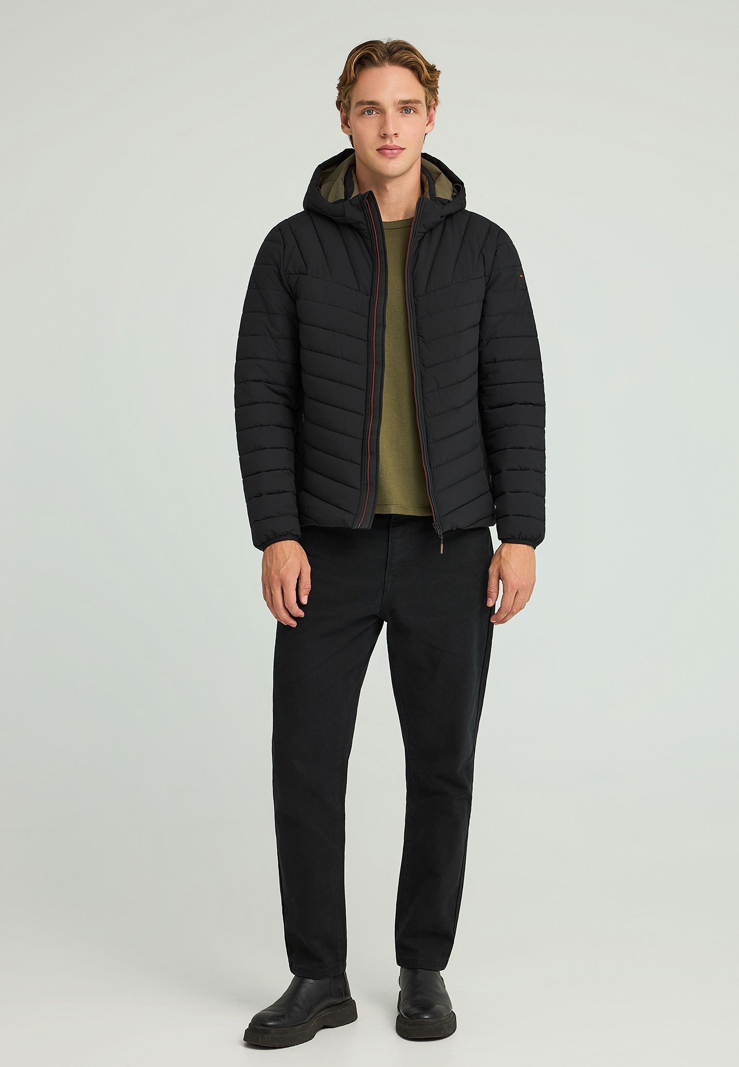 Ανδρικό μπουφάν σχεδιασμένο για τις δραστηριότητες του φθινοπώρου και του χειμώνα – από χειμερινά σπορ και πεζοπορίες μέχρι urban εξορμήσεις. Η κανονική εφαρμογή του με ψηλή λαιμόκοψη, κουκούλα και κλείσιμο με φερμουάρ εξασφαλίζει άνεση και προστασία. Κατασκευασμένο από ανθεκτικά συνθετικά υφάσματα και πολυεστέρα με καπιτονέ υφή, προσφέρει μοντέρνο look σε μονοχρωματική απόχρωση. Οι τσέπες με φερμουάρ προσθέτουν πρακτικότητα, ενώ ο μίνιμαλ σχεδιασμός το καθιστά ευέλικτο για layering. Συνδυάστε το με casual τζιν και sneakers για μια ανεπιτήδευτη καθημερινή εμφάνιση με outdoorsy χαρακτήρα.