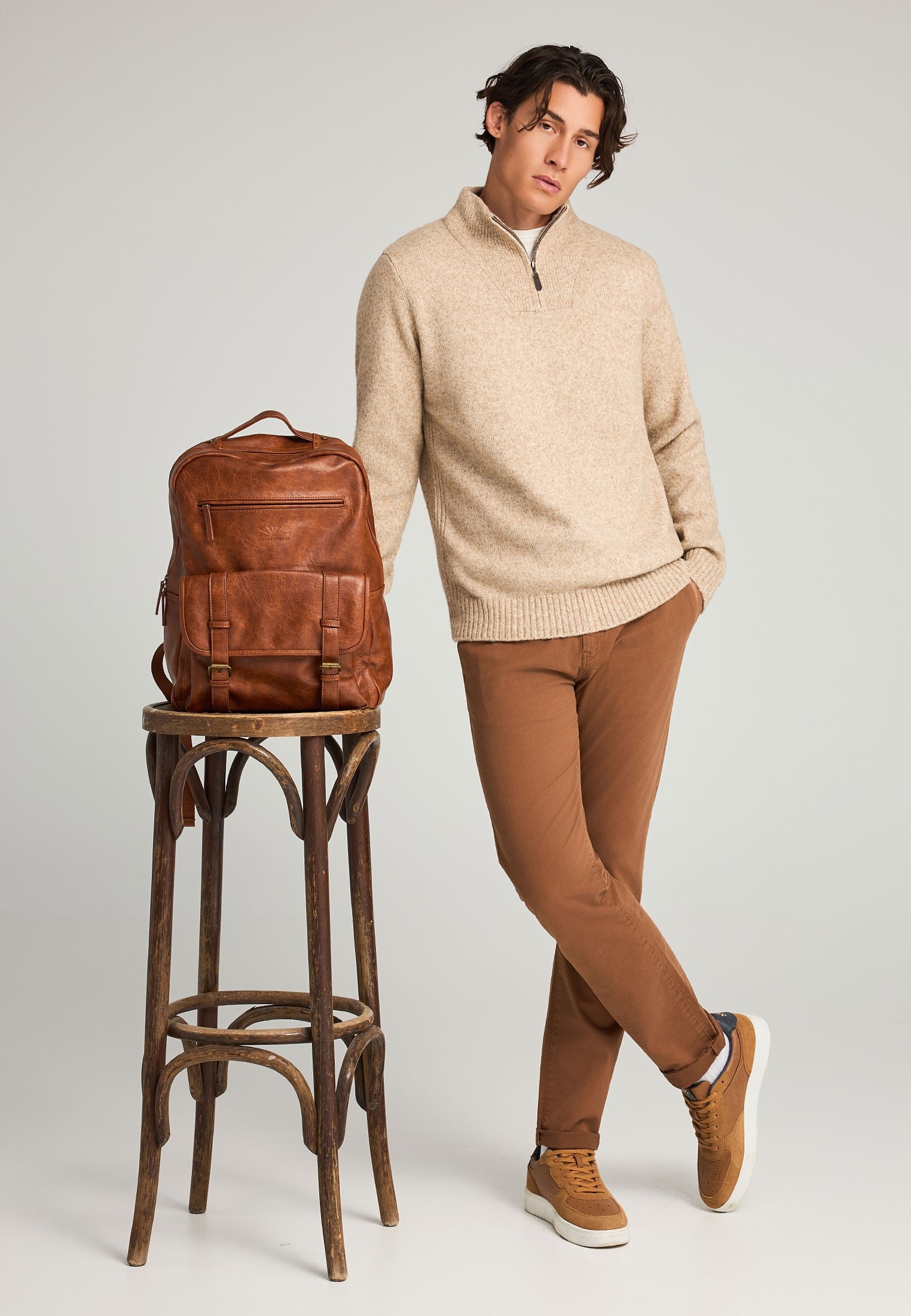 Αναβάθμισε το καθημερινό σου στυλ με αυτό το ανδρικό chino παντελόνι σε ίσια γραμμή και πλήρες μήκος – ένα διαχρονικό κομμάτι που προσαρμόζεται σε κάθε περίσταση. Κατασκευασμένο από φυσικές ίνες με μίξη βαμβακιού, προσφέρει άνεση, αναπνεύσιμη εφαρμογή και κομψότητα όλες τις εποχές του χρόνου. Το κλασικό κόψιμο με κανονικό καβάλο και ίσιο στρίφωμα, σε συνδυασμό με τις θηλιές ζώνης, το κουμπί και το φερμουάρ, χαρίζουν πρακτικότητα και στιλ. Οι τσέπες με κλίση και η διακριτική πλακέτα λογότυπου ολοκληρώνουν τη minimal αισθητική. Συνδύασε το με πουκάμισο για μια εκλεπτυσμένη εμφάνιση ή με χαλαρό T-shirt για ανεπιτήδευτο casual look.