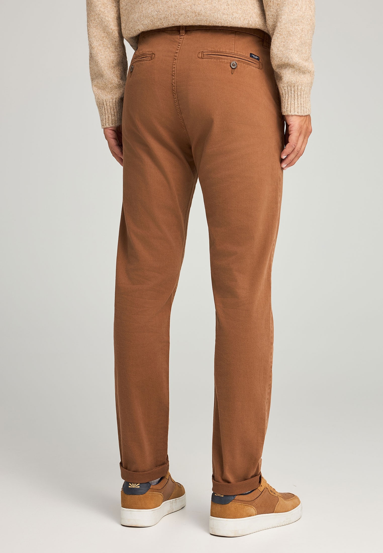 Αναβάθμισε το καθημερινό σου στυλ με αυτό το ανδρικό chino παντελόνι σε ίσια γραμμή και πλήρες μήκος – ένα διαχρονικό κομμάτι που προσαρμόζεται σε κάθε περίσταση. Κατασκευασμένο από φυσικές ίνες με μίξη βαμβακιού, προσφέρει άνεση, αναπνεύσιμη εφαρμογή και κομψότητα όλες τις εποχές του χρόνου. Το κλασικό κόψιμο με κανονικό καβάλο και ίσιο στρίφωμα, σε συνδυασμό με τις θηλιές ζώνης, το κουμπί και το φερμουάρ, χαρίζουν πρακτικότητα και στιλ. Οι τσέπες με κλίση και η διακριτική πλακέτα λογότυπου ολοκληρώνουν τη minimal αισθητική. Συνδύασε το με πουκάμισο για μια εκλεπτυσμένη εμφάνιση ή με χαλαρό T-shirt για ανεπιτήδευτο casual look. Cloth Πληροφοριες Προϊοντος Mid Rise Regular Fit Δυο μπροστινές και δυο πίσω τσέπες Κλείσιμο με φερμουάρ και κουμπί
