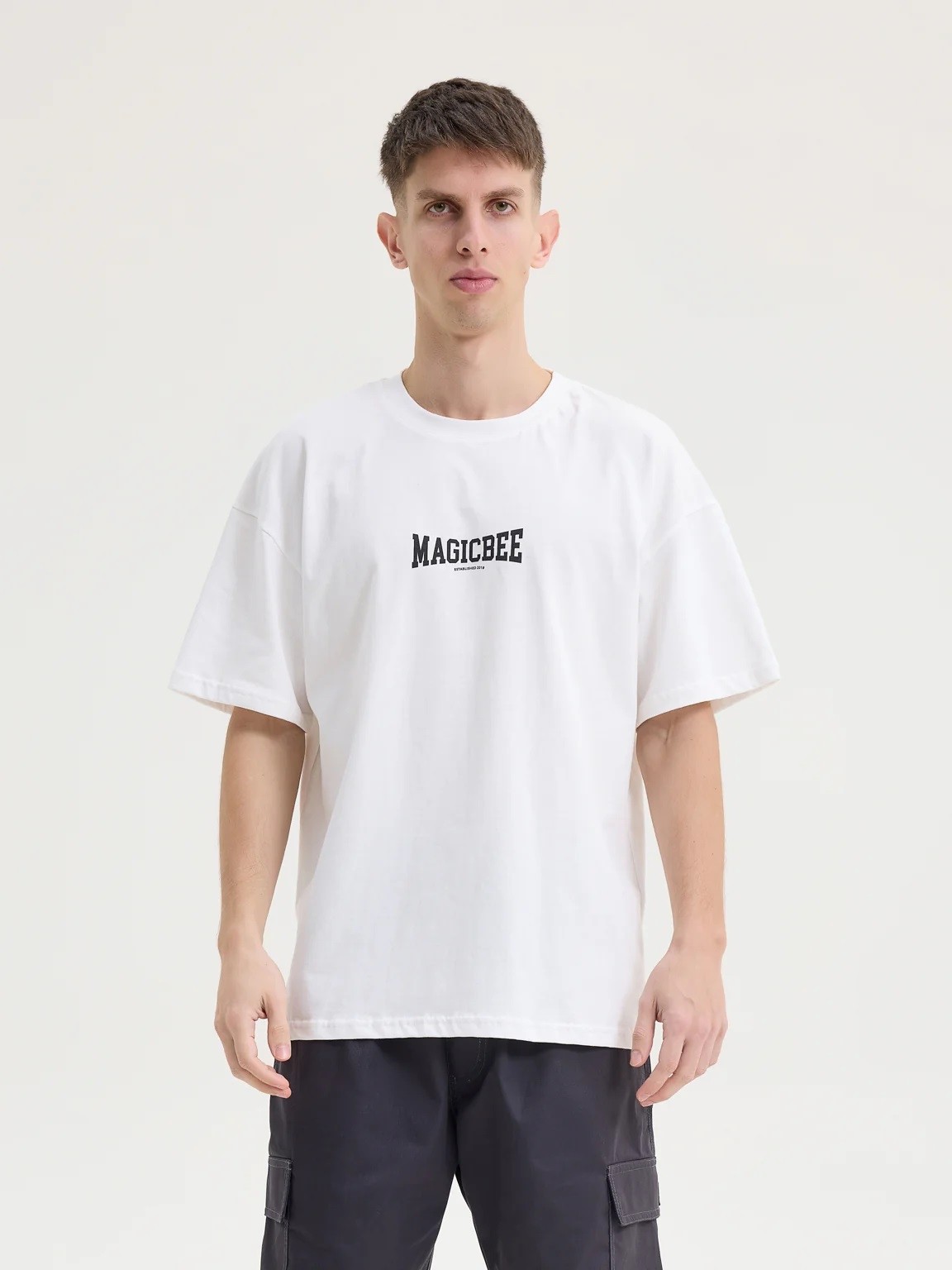 T-shirt Magicbee με 100% βαμβακερό υφασμα και τύπωμα -κανονικό τελείωμα -γραμμή: υπερμεγέθης -made in Greece -100% βαμβάκι