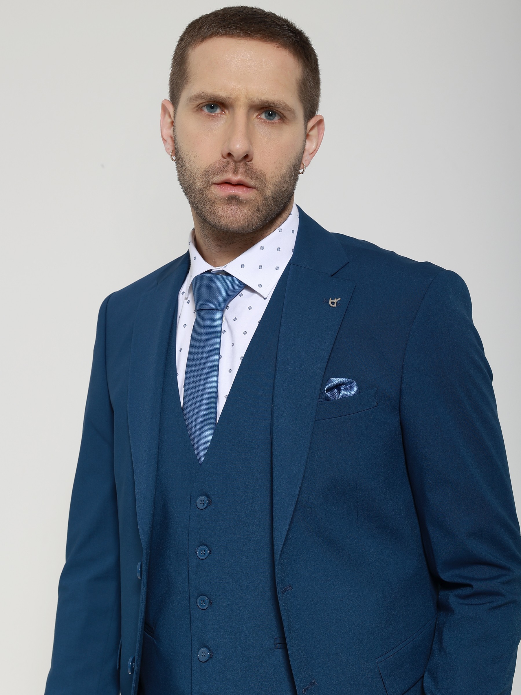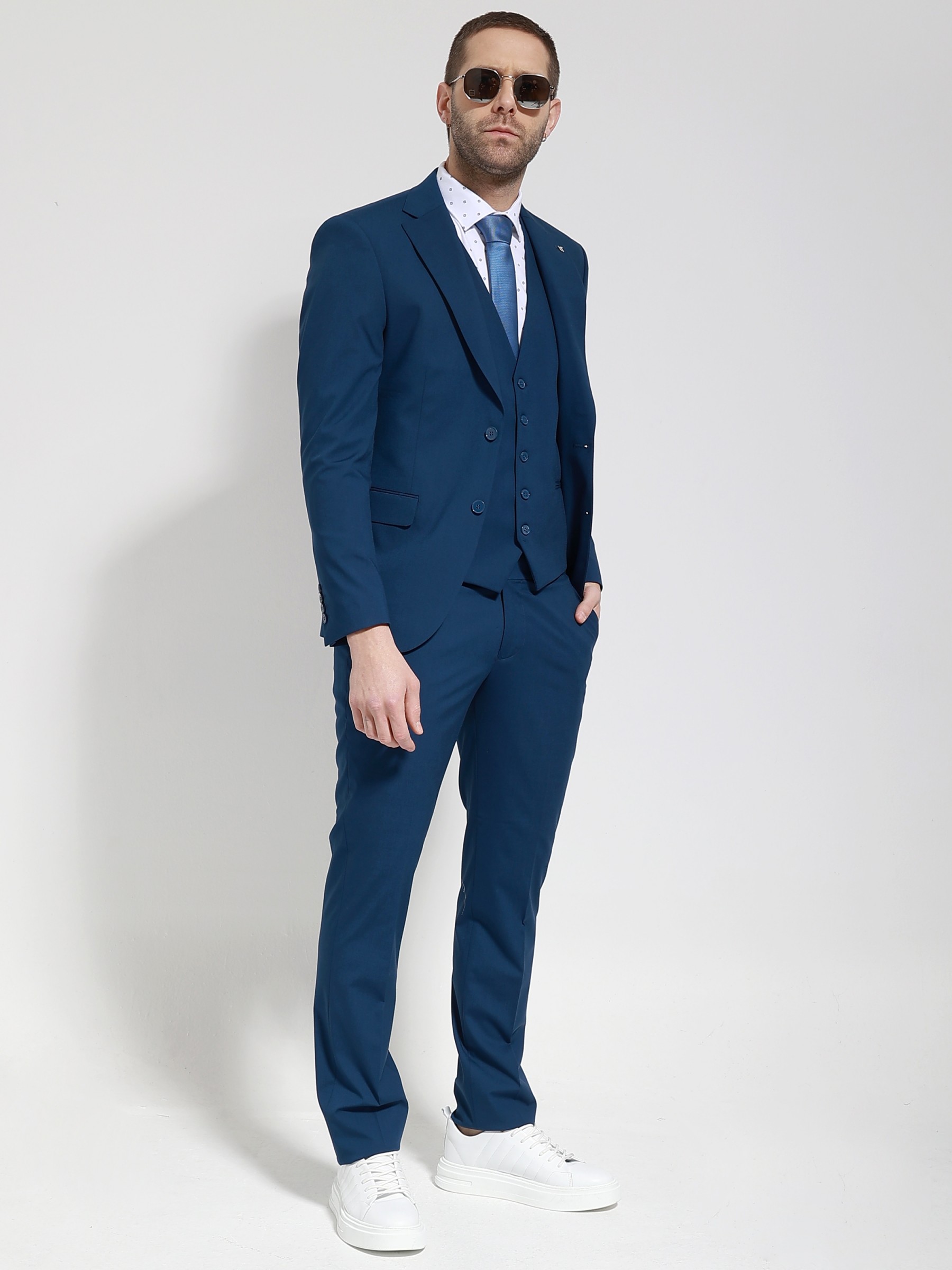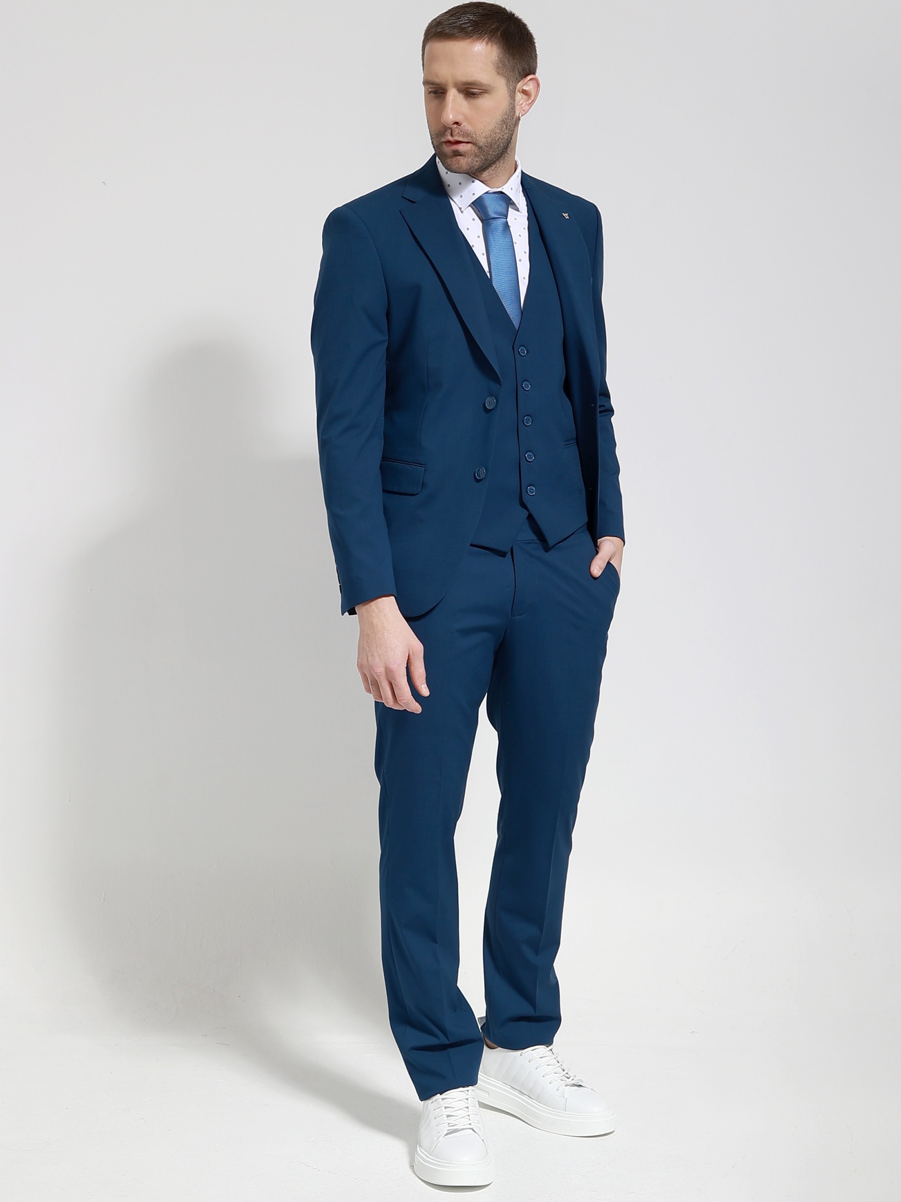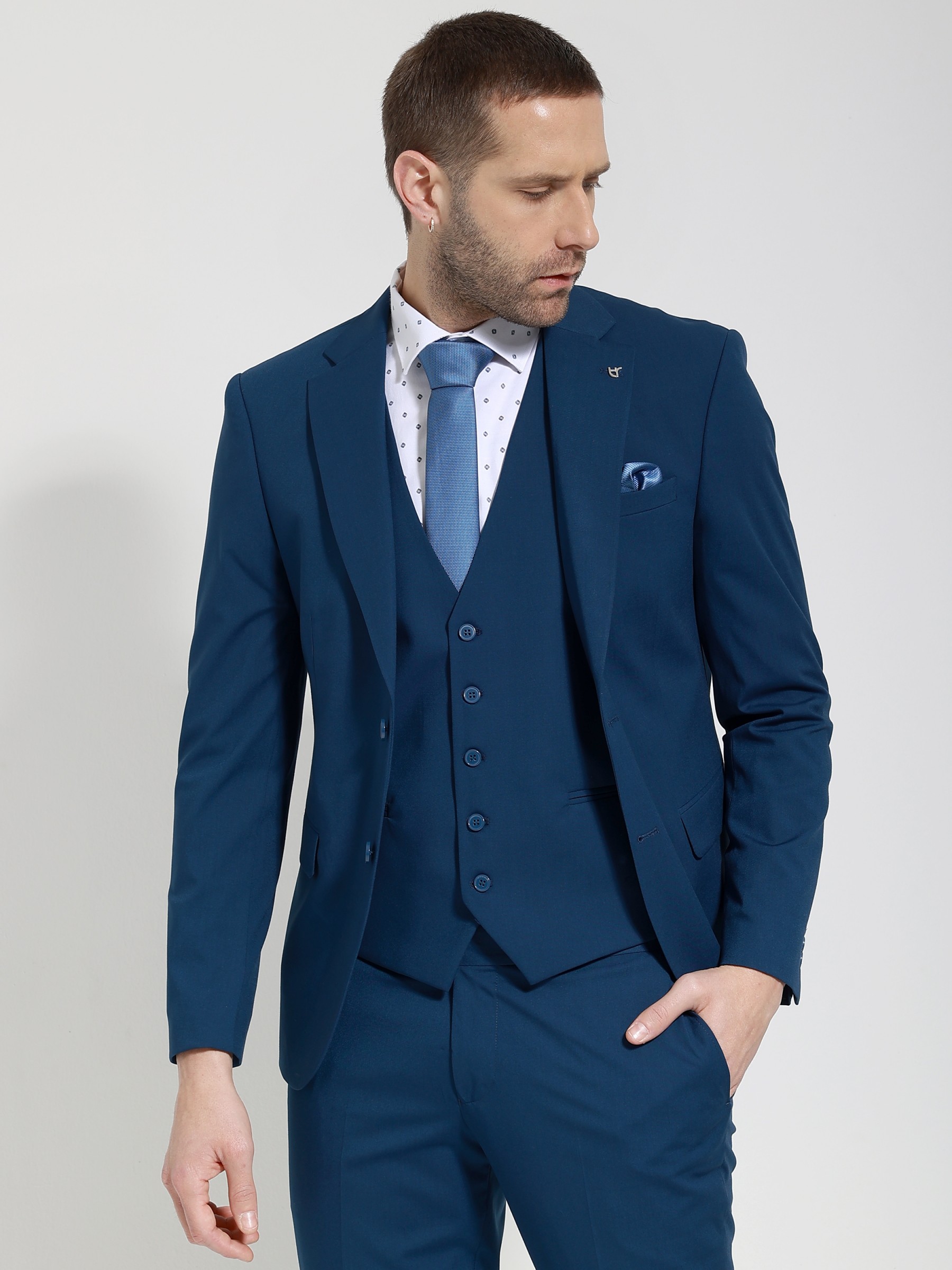 Αποτελειται απο 3 τεμαχια, σακακι, παντελονι και γιλεκο.