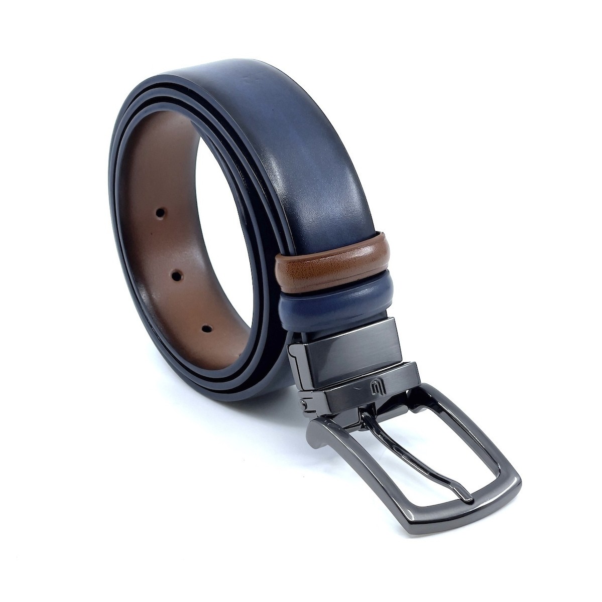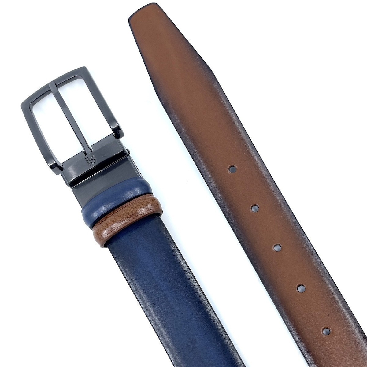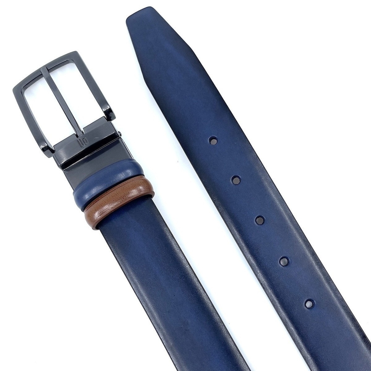 Δερμάτινη κλασσική ζώνη διπλης οψεως με πειστρεφομενη αγκραφα με χαραγμένο το λογότυπο legend.