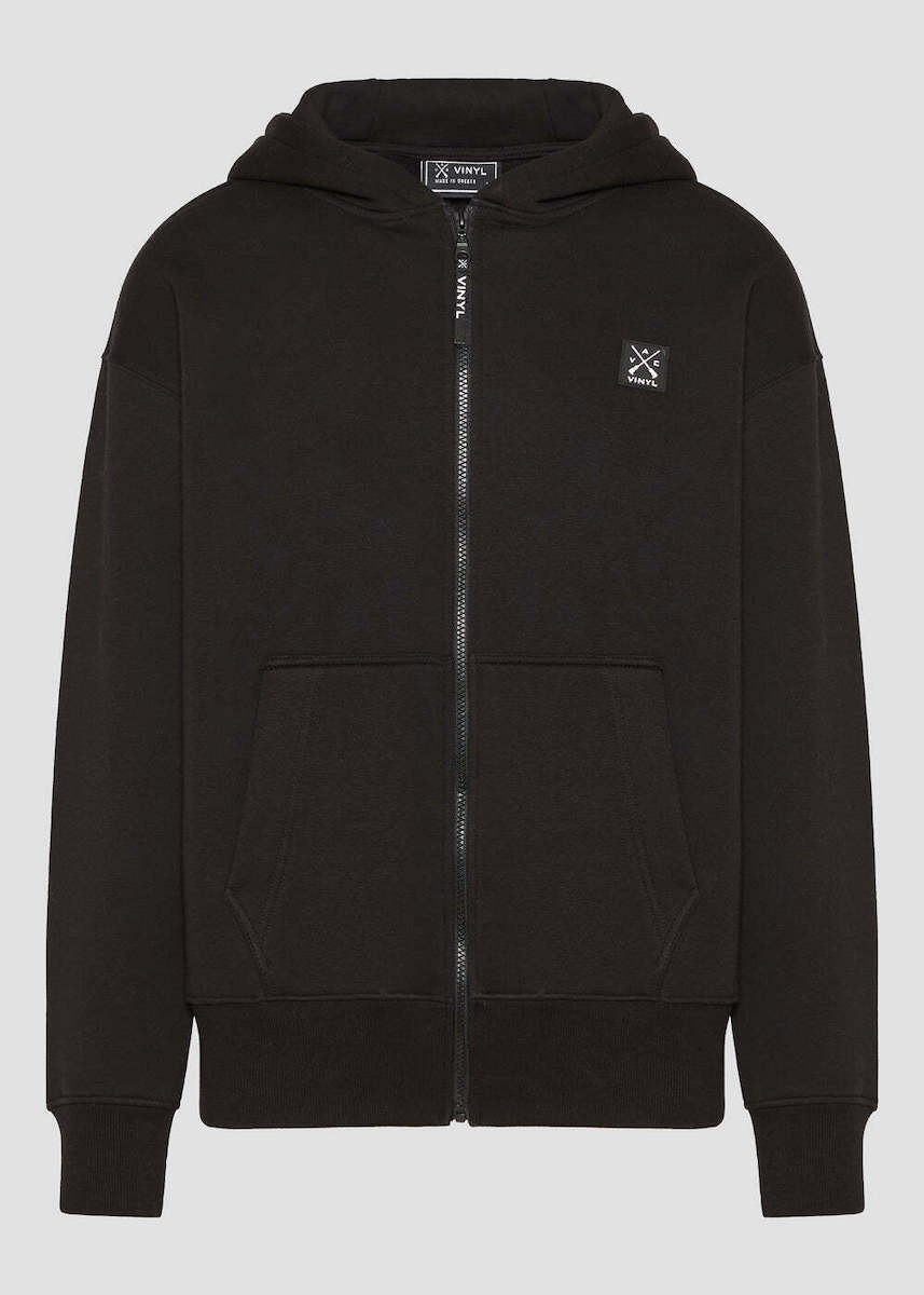 Ζακέτα μονοχρωμη με το λογοτυπο της εταιρειας στο μπροστινο μερος.